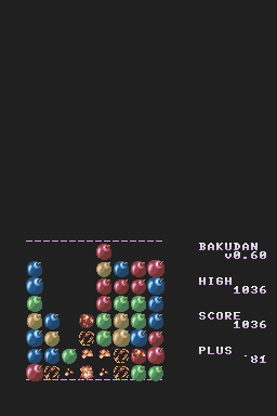 爆弾を着火し爆破していき、画面上部の点線を越えて積み上がるとゲームオーバー。