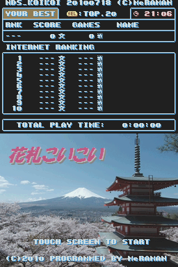 準備 : ※DSマジコンを起動できる環境が必要です! 1. NDS_KOIKOI ダウンロード 2. 「NDS_KOIKOI.nds」をmicroSDのルートにコピー 3. ニンテンドーDSを起動し、「NDS_KOIKOI.nds」を実行